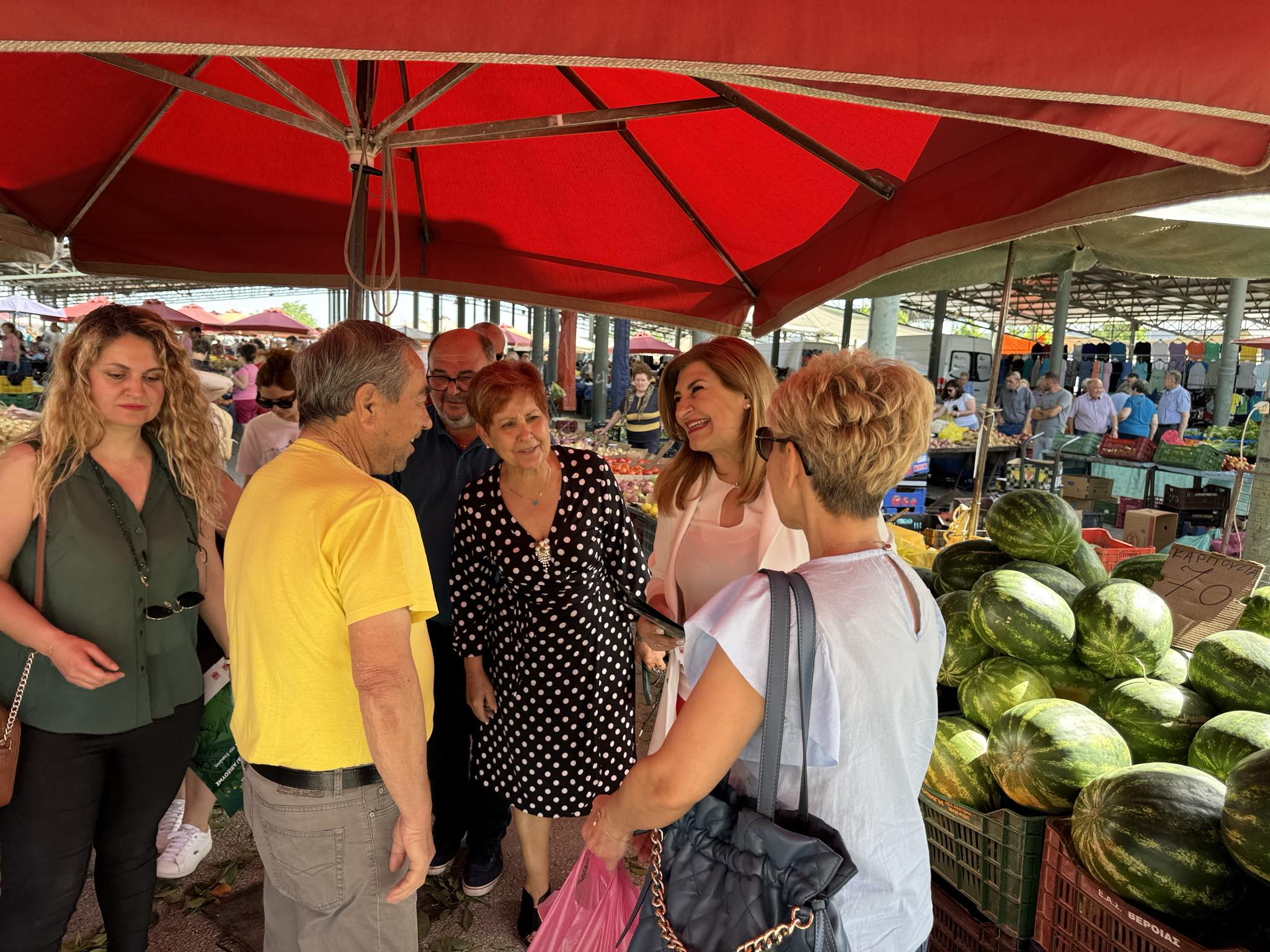 Η επίσκεψη ξεκίνησε από την λαϊκή αγορά της πόλης, όπου παραγωγοί -αγρότες και κτηνοτρόφοι- πλανόδιοι πωλητές, όπως και πολίτες επεσήμαναν, ο καθένας από τη δική του πλευρά, την οικονομική αβεβαιότητα που βιώνουν καθημερινά, ως αποτέλεσμα των ανύπαρκτων πλέον δράσεων της Πολιτείας, σε ό,τι αφορά την τιθάσευση της ακρίβειας και την απομείωση του οικογενειακού τους εισοδήματος.