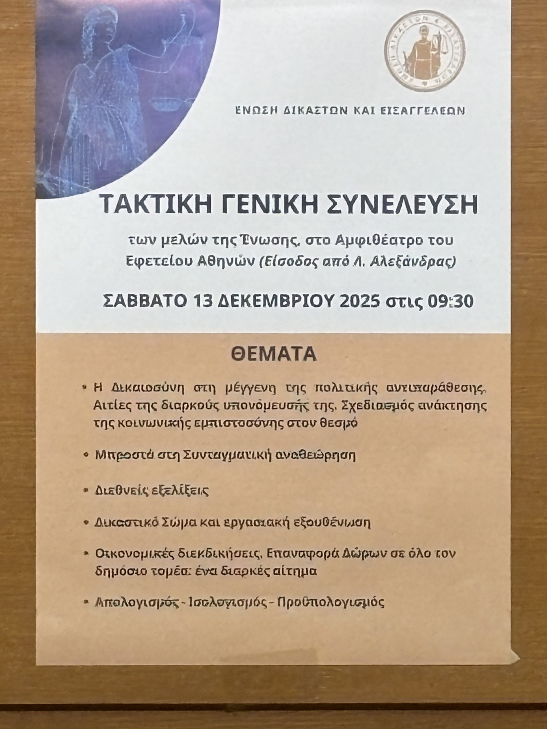 Στην έναρξη των εργασιών της Ετήσιας Τακτικής Γενικής Συνέλευσης  της Ένωσης Δικαστών και Εισαγγελέων παρευρέθηκε η Τομεάρχης Δικαιοσύνης, Θεσμών & Διαφάνειας του ΠΑΣΟΚ-ΚΙΝΑΛ και βουλευτής Λάρισας, Ευαγγελία Λιακούλη εκπροσωπώντας το ΠΑΣΟΚ -ΚΙΝΑΛ και τον Πρόεδρο κ. Νίκο Ανδρουλάκη.